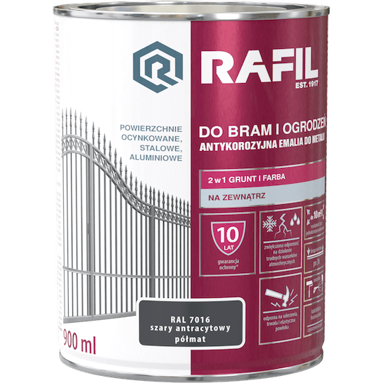 Rafil Do Bram i Ogrodzeń szary antracyt RAL 7016 półmat 900ml
